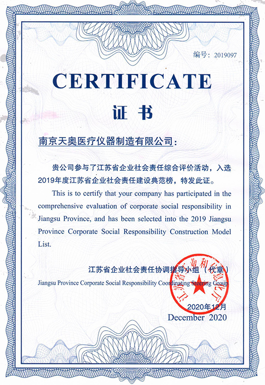 天奧入選2019年度江蘇省企業(yè)社會責(zé)任建設(shè)典范榜